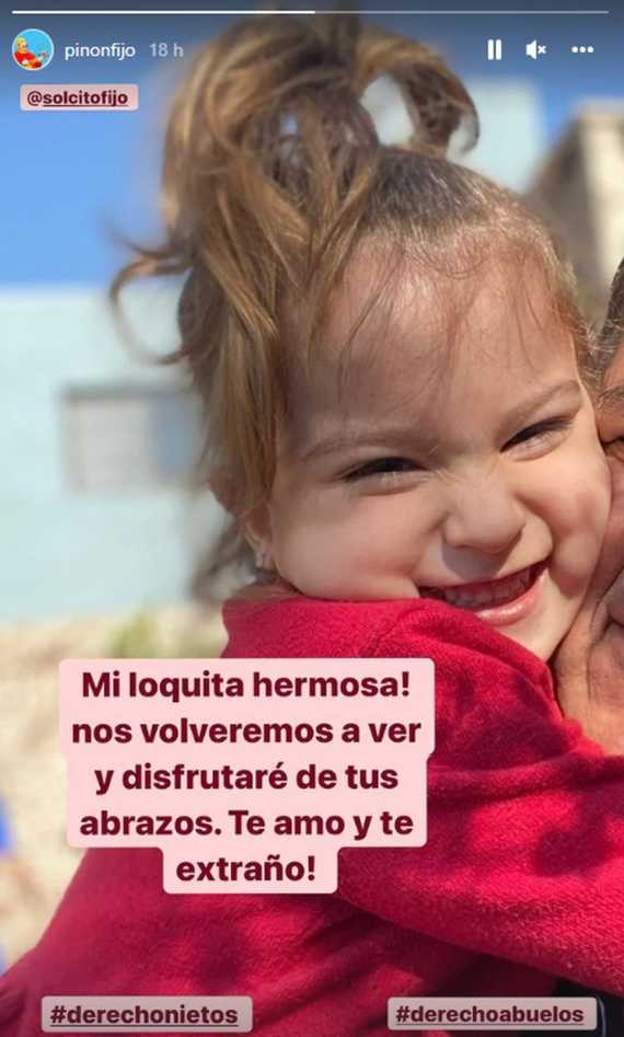 Piñón fijo estuvo envuelto en un escándalo luego de que publicará una foto con su nieta Luna, en historia en su cuenta de Instagram. En el posteo había escrito: «Mi loquita hermosa, nos volveremos a ver y disfrutaré de tus abrazos. Te amo y te extraño. #derechonietos #derechoabuelos». Una de las hipótesis giró en torno a la separación de Fabián Gómez con su esposa Karina Suárez, mamá de Sol y Jeremías y que su hija lo castigaba alejandolo de sus nietos.