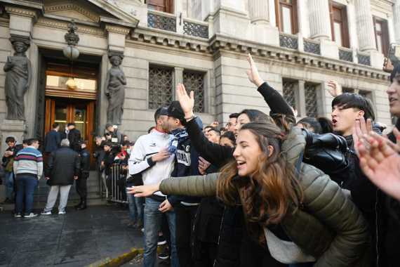 Mientras, en las afueras del Congreso, cientos de militantes acompañan a CFK en su descargo para darles su apoyo. Desde este lunes por la tarde que los fieles están apostados en la esquina de su departamento en Recoleta y la caravana la siguió hasta el Senado.