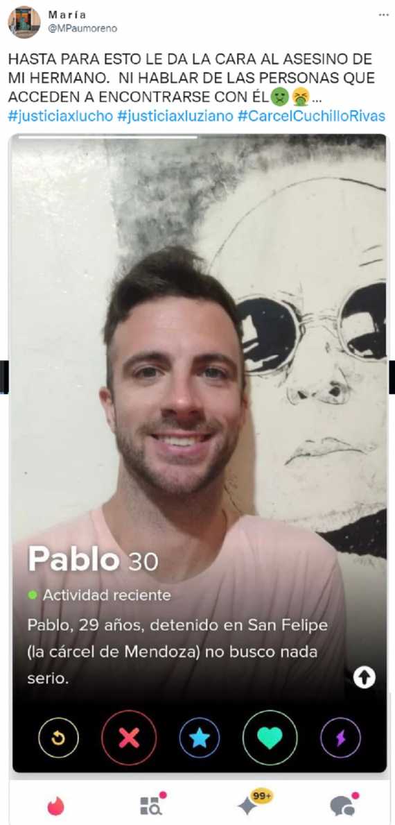 A fines de noviembre, causó malestar en Mendoza la noticia de que Pablo Rivas Stewart, presunto asesino del periodista Luziano Moreno, se promocionaba a sí mismo en Tinder.