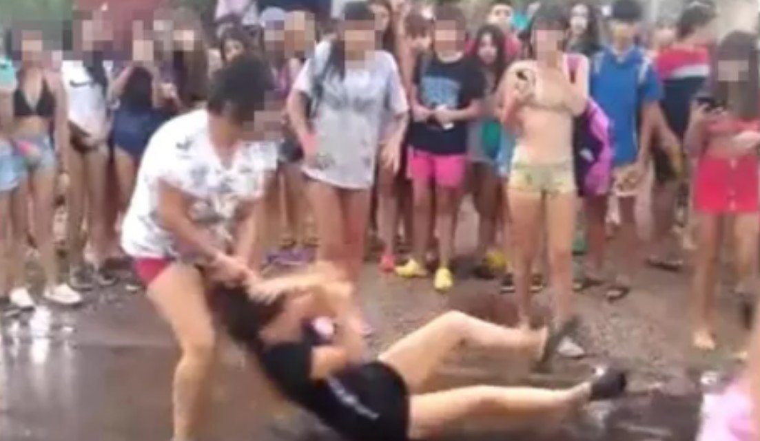 El pasado 6 de enero una chica fue golpeada por dos menores que la atacaron a la salida del balneario el Country, ubicado en La Colonia, Junín en la provincia de Mendoza. En imágenes captadas en video se observa cómo la víctima recibía piñas y patadas en el piso. El hecho se produjo ante la mirada de más de 20 jóvenes que optaron por registrar en sus celulares la pelea en lugar de intervenir para que el hecho no pase a mayores.