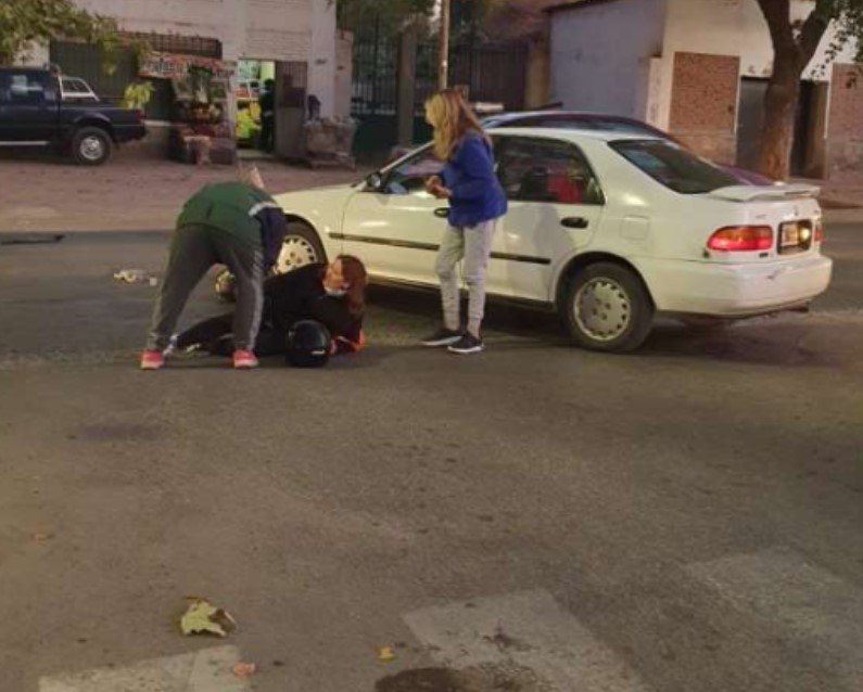 Si bien, por suerte, no hubo ningún herido de gravedad, el hombre de la moto se exasperó con la mujer que manejaba el auto que lo chocó a él y a su acompañante, quién quedó tirada en el piso.