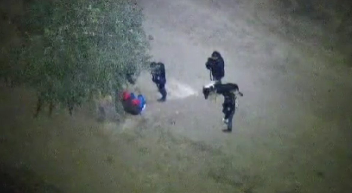 De esta manera, se inició un rastrillaje por aire y tierra con drones, perros adiestrados y varios efectivos por la propiedad donde personal de VANT divisó con una cámara infrarroja térmica, que el sujeto estaba debajo un árbol, durmiendo.