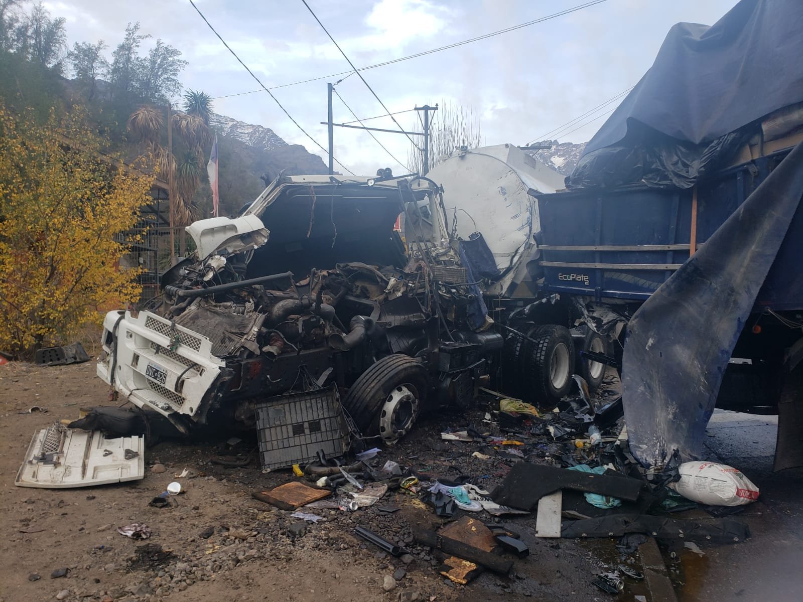 A la 1: 30 de la tarde de ayer, (2:30 hora chilena), se produjo un violento choque en Chile a la salida de los llamados Caracoles a la altura de Río Blanco, sector Guardia Vieja en la ruta 60. Un camión de una empresa de Mendoza se quedó sin frenos en plena bajada, impactando a otros dos camiones.