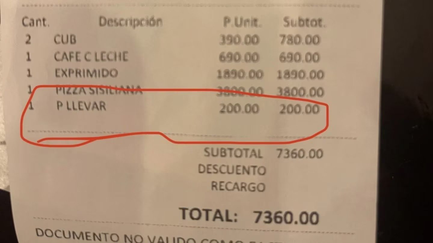Para su sorpresa, el restaurante intentó cobrarle por el paquete.