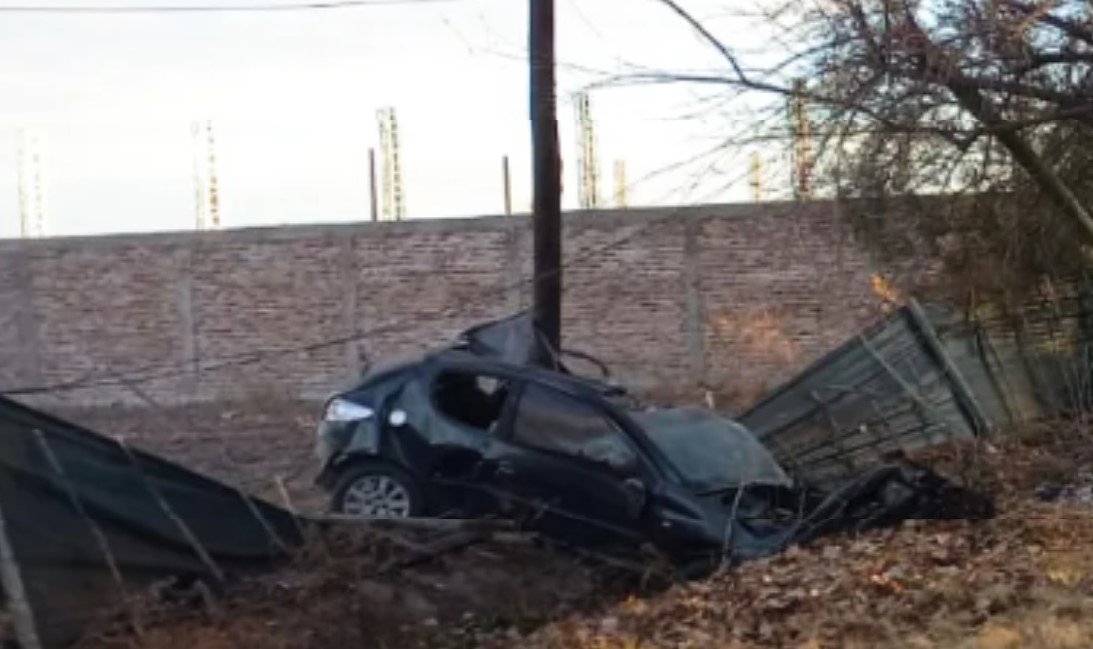 El vehículo siniestrado es un Peugeot 206 que circulaba por la calle Buenos Vecinos, y al llegar cerca de la intersección con Mariani, el conductor perdió el control y se fue a la banquina, saltando la acequia y quedando dentro de un terreno tras romper el cerco perimetral.