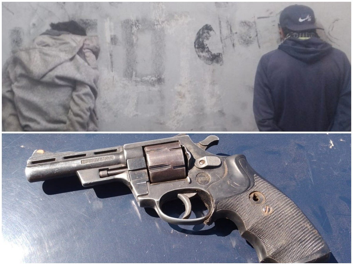 Una vez reducidos, les realizaron el palpado y uno de ellos llevaba un revólver calibre 32 largo platado con cachas plásticas.