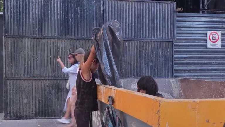 trmnteym La niña se mete adentro del contenedor para seleccionar. Su hermano se queda afuera y recibe lo que ella le pasa. Eligen lo que se puede consumir aún. Están en plena calle Sarmiento de Ciudad. En la vereda de enfrente brilla la estrella Michelin de un restaurante y los turistas extranjeros copan los locales de comida. La Ciudad sigue su ritmo, mientras Camila y Andrés, los hermanos, parecen invisibles.
