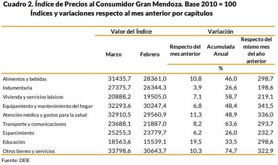 Este viernes se conoció la el índice de marzo en la provincia de Mendoza y estuvo muy por debajo de los número a nivel nacional. Qué fue lo que más aumentó.