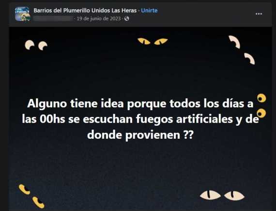 «¿Alguno tiene idea por qué todos los días a las 00hs se escuchan fuegos artificiales y de dónde provienen ?», otro comentario en los grupos del departamento de Las Heras.