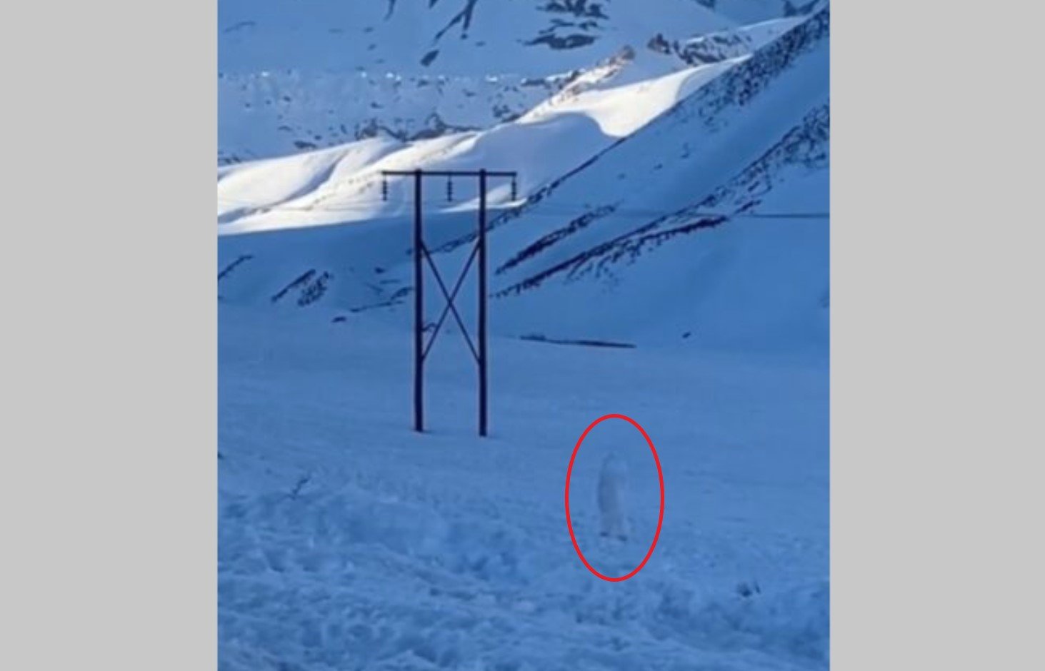 Al bajar del auto, grabó un video en el que se ve una figura de color blanco total, caminando lentamente sobre la nieve, sin mostrar su rostro.