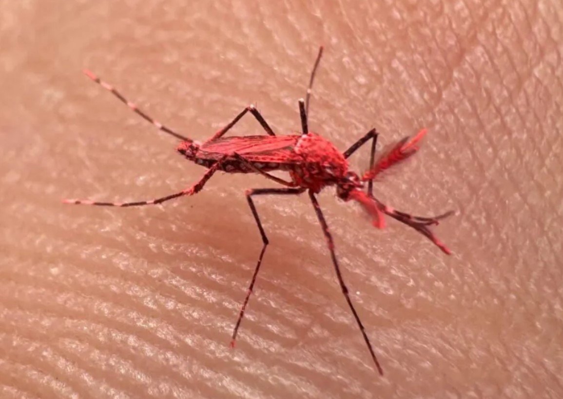 Lo curioso es el aspecto de los mosquitos estériles Aedes aegypti: se ven de un color naranja fluorescente como el de esta foto.