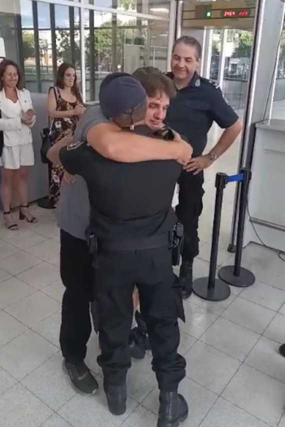 Al salir, el policía rosarino fue recibido por su familia y por compañeros de la Unidad Regional II, quienes aplaudieron el «desfile» del funcionario de seguridad e hicieron sonar las sirenas de las patrullas de manera insistente, a manera de celebrar la liberación de su colega.