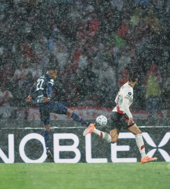 La primera chance de peligro llegó a los 26 y fue para River, con un zurdazo tremendo desde afuera del área de Juanfer Quintero que se estrelló en la base del palo.