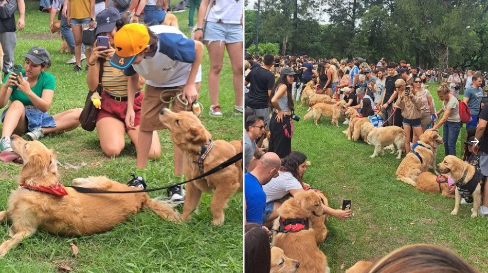 Sobre cuánto fue el total de la convocatoria de perros de la misma raza, el influencer detalló: «Está comprobado que los golden son muy apegados a los humanos. Ver más de 2.500 juntos es una experiencia única».